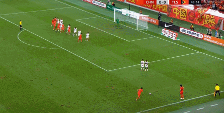 但在第41分钟,中国队通过定位球打开比分: